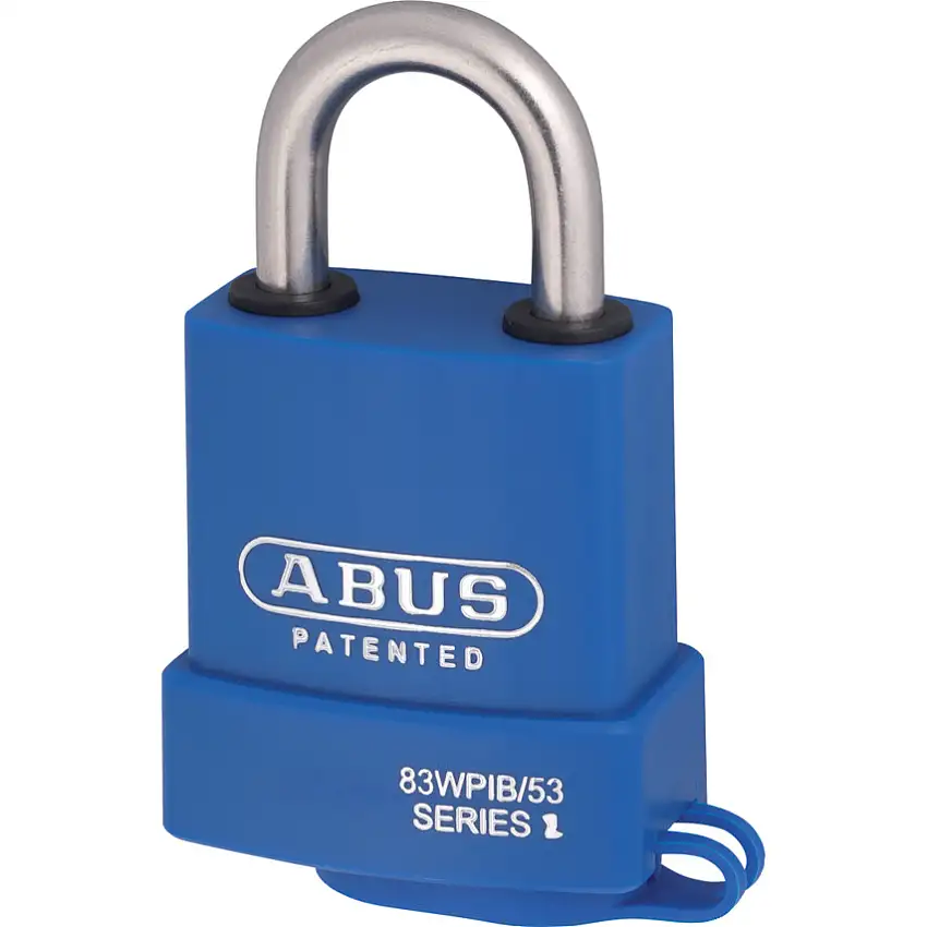 Abus Keyed Padlock, Keyed Different, Brass, Blue, 57mm Width, Weatherproof
